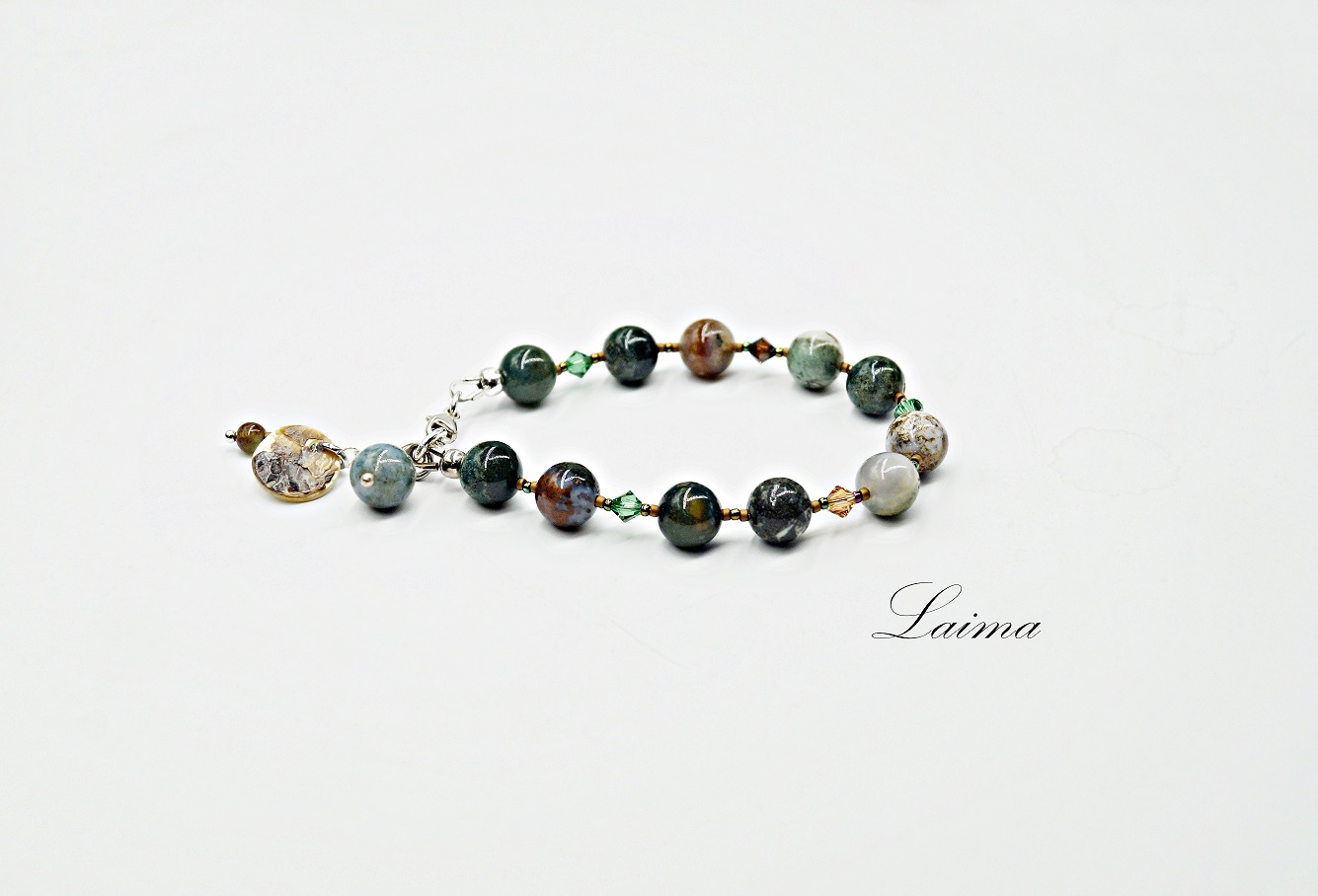 Materiale: Agatsteiner 8mm Høykvalitetskrystaller 4mm Glassperler 2mm Låsen er av Sølv 925